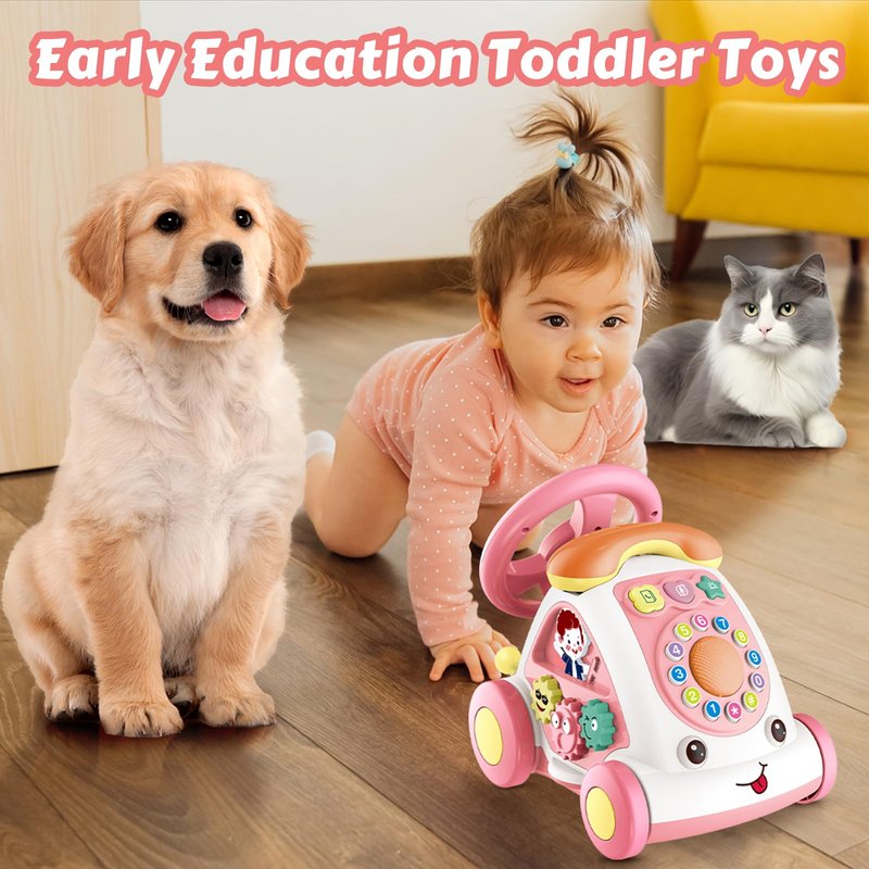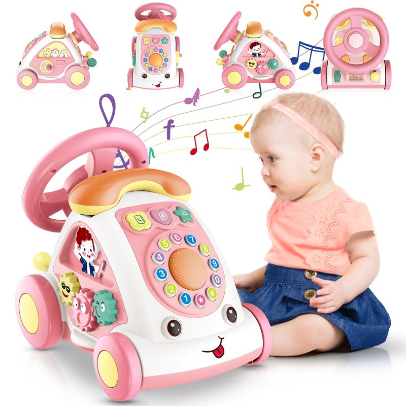 Toys for 1+ Year Old Girls - First Birthday Gift for Girls- Music Toddler Toys with Car/Sound/Music/Steering Wheel/Telephone/Lights Multi-Functional Car Early Educational Birthday Gift for Girl