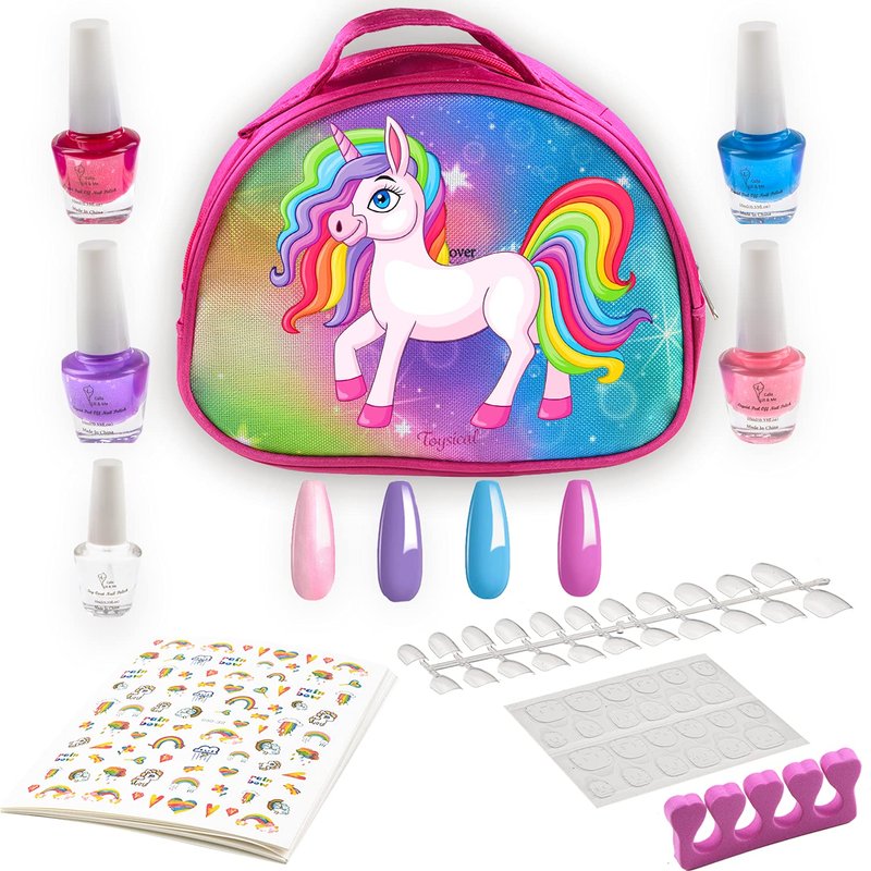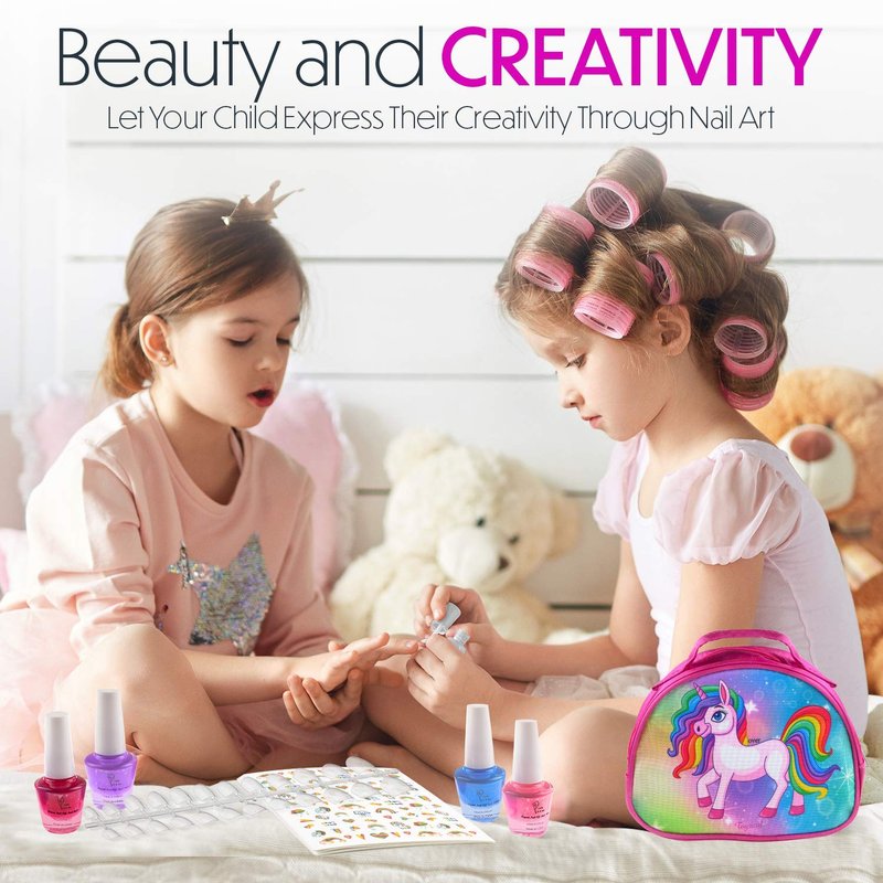 - STAYS ON TILL THE END OF THE PARTY - This girls nail polish sets for kids won’t peel by itself and leave your ‘lil one feeling abandoned. It’ll stay on clear and bright until it’s time to remove. It easily peels off when needed without nail polish remover.