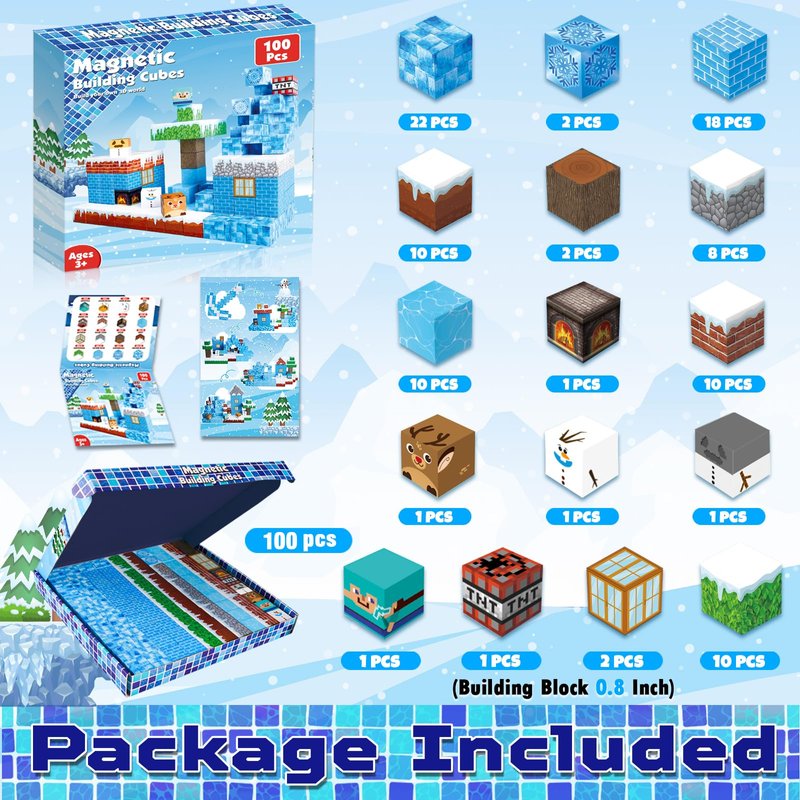 ToyUnited Magnetic Blocks - 100PCS Magnetic Building Blocks Glacier Castle, STEM Montessori Sensory Toys for Toddlers Kids Boys Girls Ages 3 4 5 6 7 8 9 10 Christmas Birthday Gifts