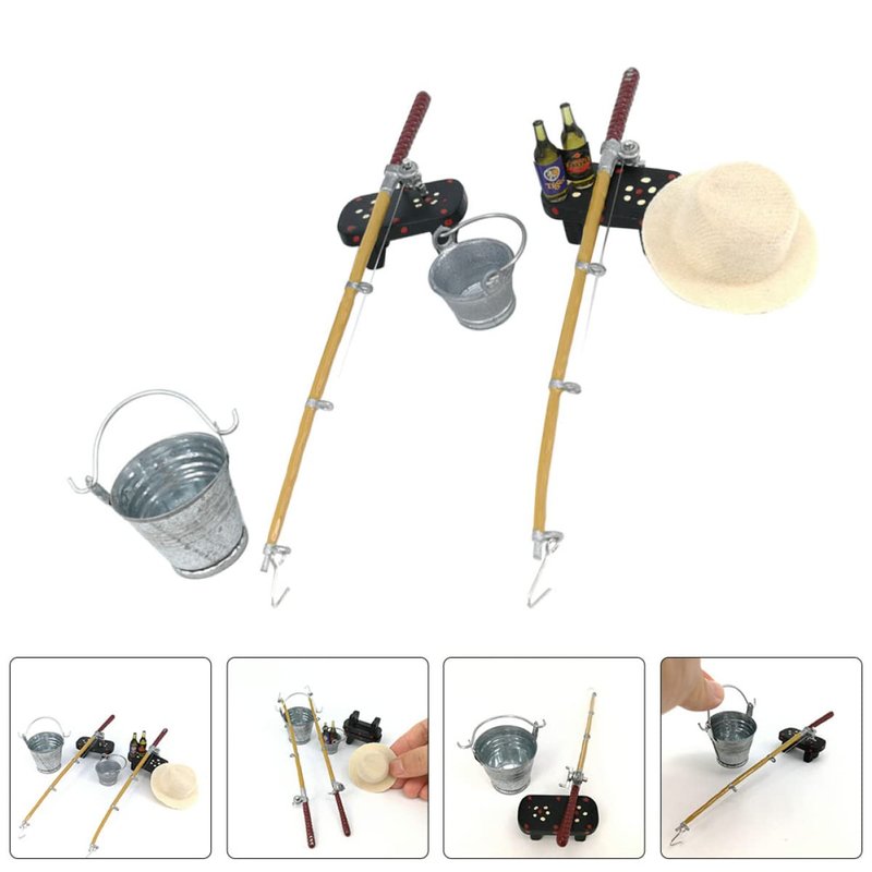 Toyvian 1 Set Simulation Fishing Tackle Ornaments Doll House Child Metal Toy Fisherman Small Plastic Toys