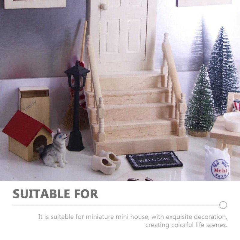 - Miniature wood stair--- The miniature stair decor is produced by wood, which is hard, sturdy, and not easy to bend or deform, giving boys and girls good use feeling. Nice supplies to add grace to the doll house. A good shopping choice