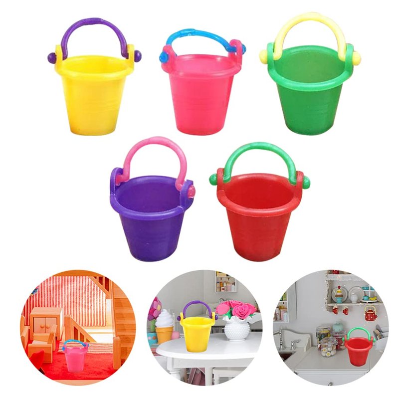 - MINIATURE BUCKETS- Made of plastic material and fine craftsmanship to make it look realistic. It can be used to decorate the garden and kitchen of the doll house, the beach, etc.