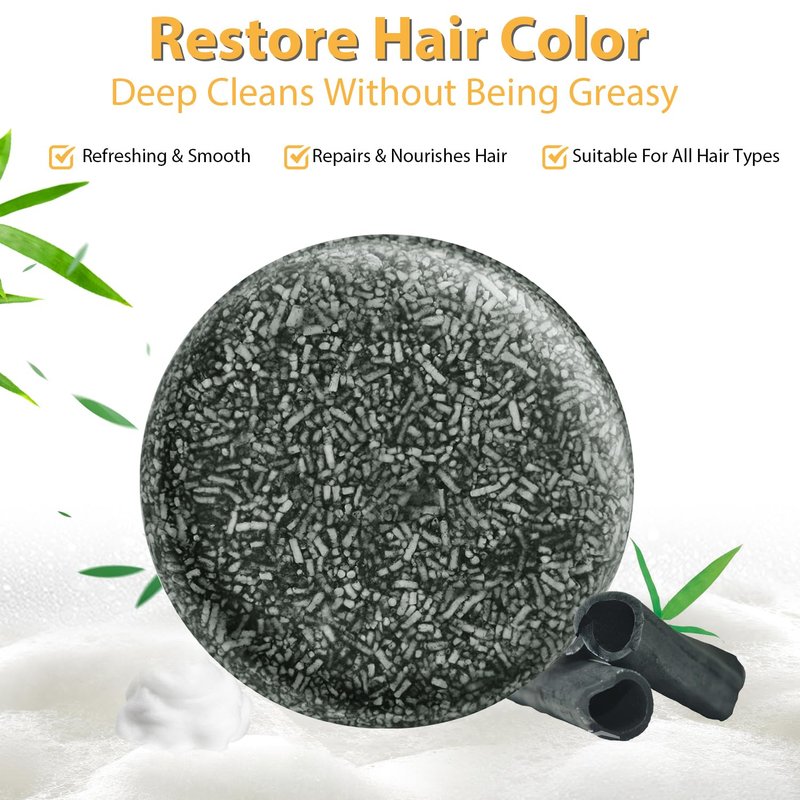 - [Restore Hair Color] Dark Shampoo Bar has the effect of restoring your natural hair color, from gray hair to vivid dark color. Natural Grey Hair Soap is especially beneficial for people with premature graying of hair. Long-term use of shampoo bar, the effect can be seen.