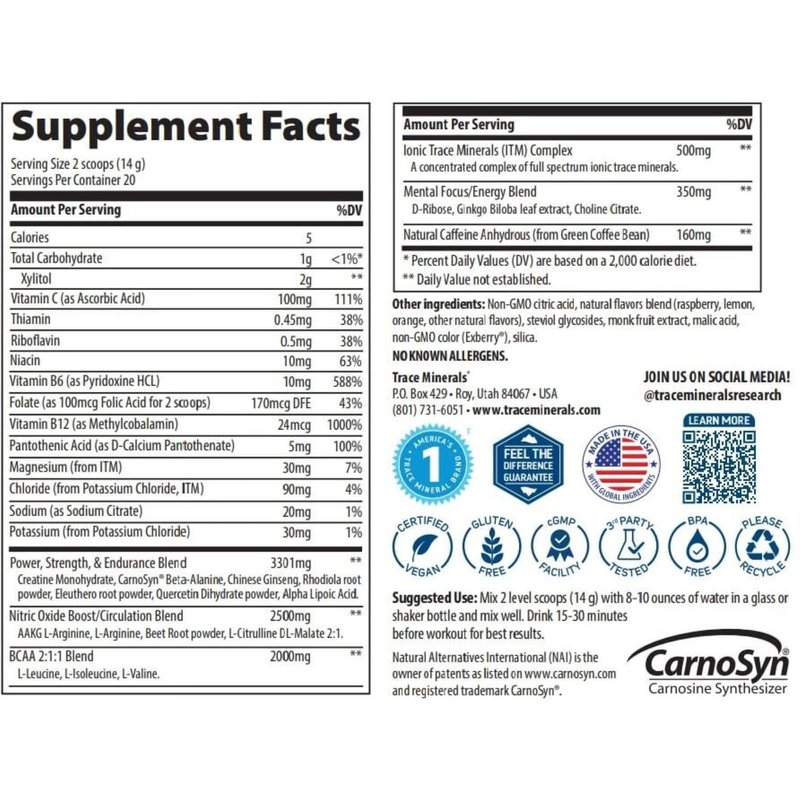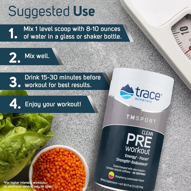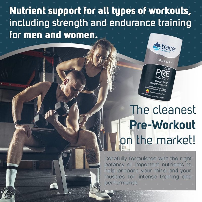 Trace Minerals | TMSPORT Series Pre Workout Supplement | Energy and Strength Booster | No Artificial Color| Raspberry Lemonade Flavor | 18.1 Ounce, 40 Servings