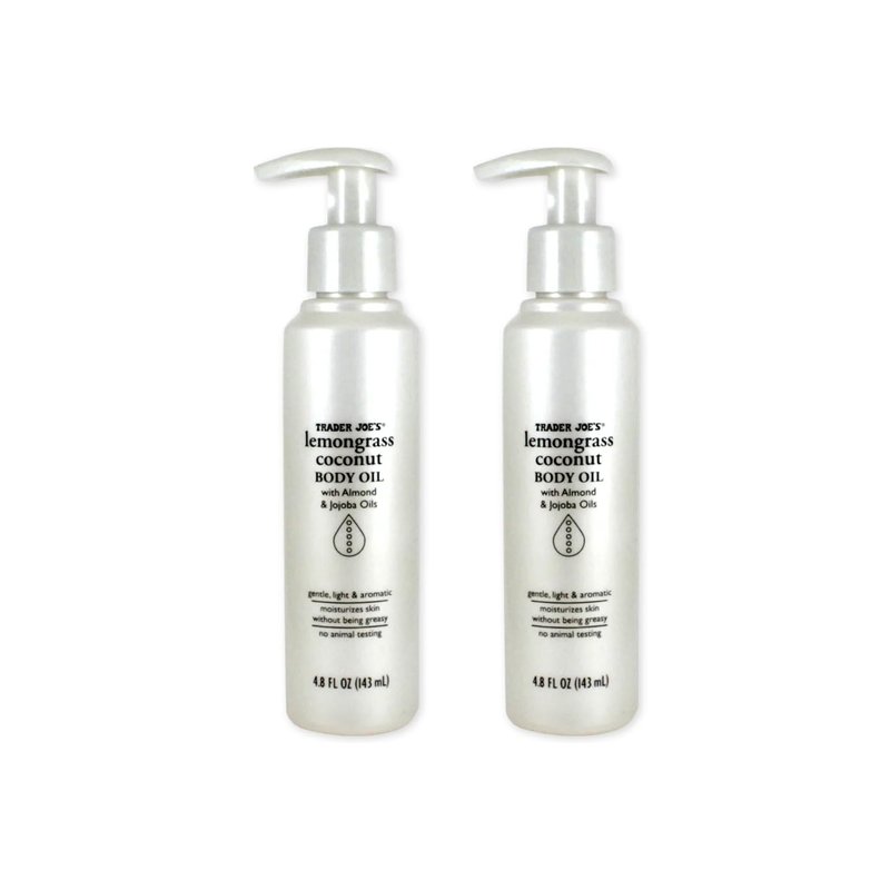Trader Joe's Lemongrass Coconut Body Oil with Almond and Jojoba Oils 4.8 FL OZ (143 ml) - 2 PACK