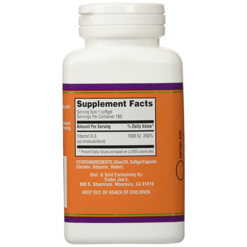 Trader Joe's Vitamin D-3 1000iu, 180softgels