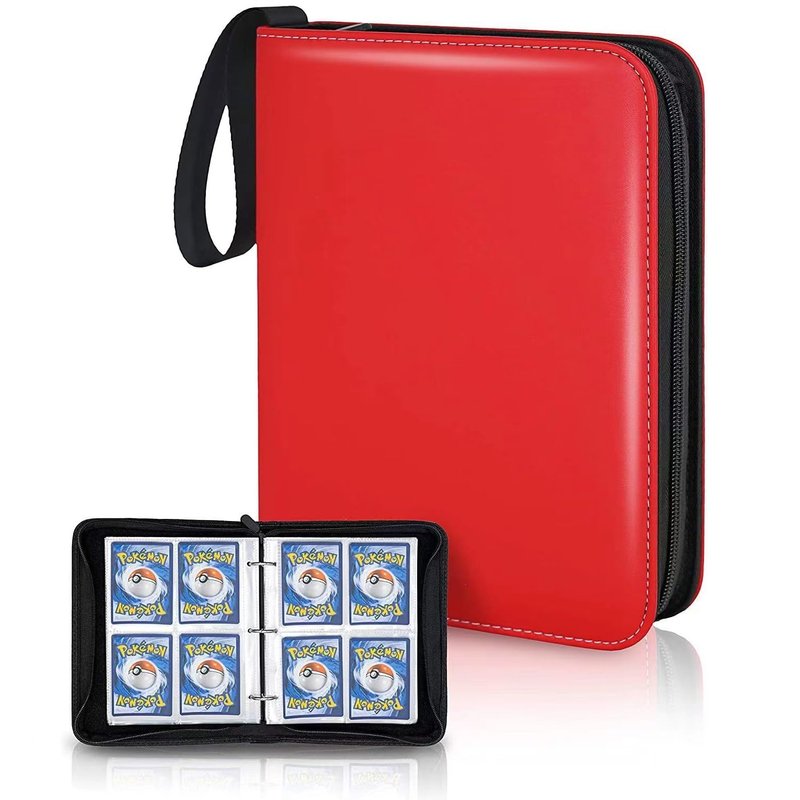 Trading Card Binder 4 Pocket,400 Pockets Card Binder for Pokemon Cards with Zipper,50 Sleeves Card Holder Compatible with Standard Card,Sport Card,Game Card-Gift for Boy and Girl (4-Pockets, Red)