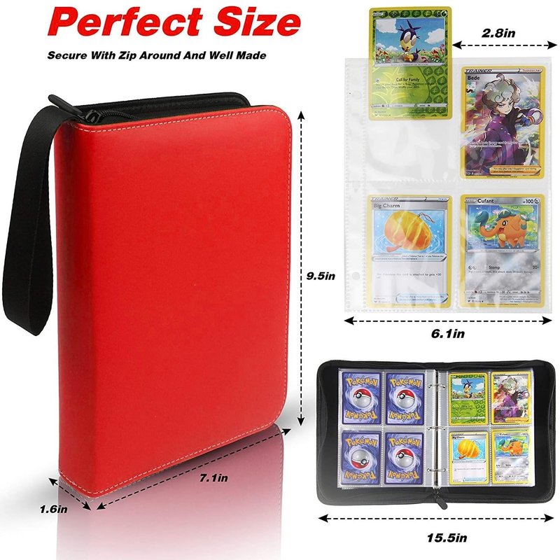 - {Compatible with Standard Sized Cards}: The trading card binder case is compatible with Pokemon Card,svarious standard-sized cards,Card Game, Yu-Gi-Oh, Star Wars X-Wing, Football cards, Baseball cards, Playing cards, etc. The transparent sleeves are made of clear Polyethylene, durable quality, acid-free, waterproof, super sturdy that won't get cards bend up, protect your card from fading and stain.