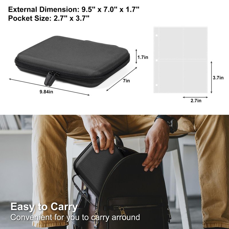 - Portable Construction - The card binder is made of premium EVA material, water or raindrops won't penetrate the inside of the card binder, with the handle design, it is convenient for you to carry it with you. The 3-ring binder design makes it easy to adjust the number of inner pages to suit your needs. The double zipper head design makes it convenient for you to open and close the card album.