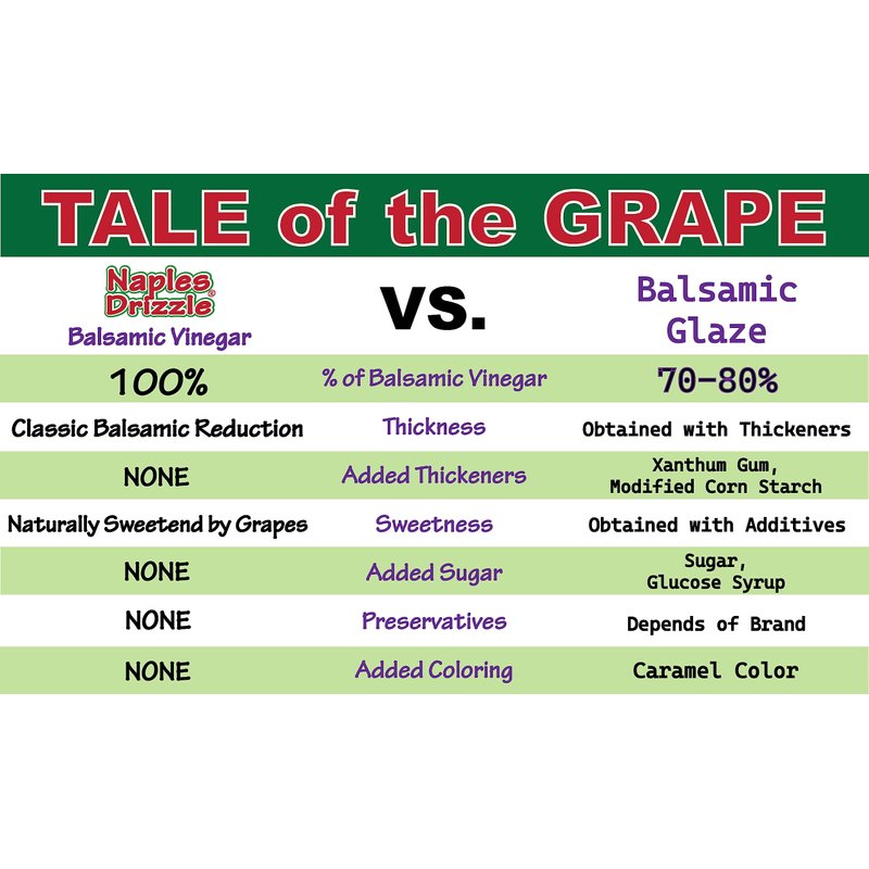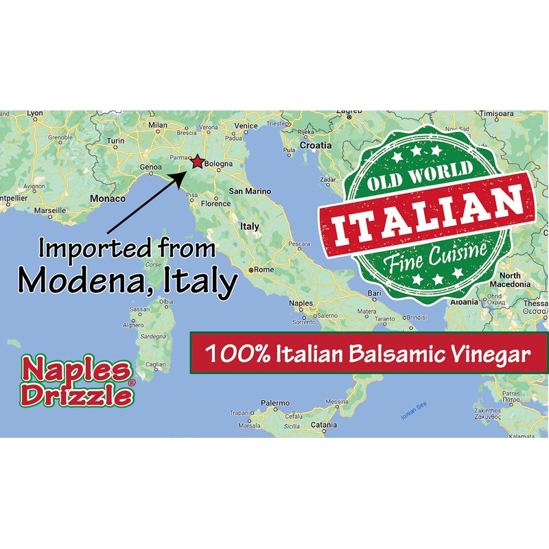 Slow aged in small, oak barrels, Naples Drizzle Balsamic Vinegar is made with traditional methods under strict controls. In 1889, our supplier began this artisan vinegar in Modena, Italy ... carefully selecting Lambrusco and Trebbiano grapes, which contain the perfect balance of sugar for a perfectly balanced taste. Gluten-Free Cholesterol-Free No Trans Fat No Preservatives Nothing Artificial
