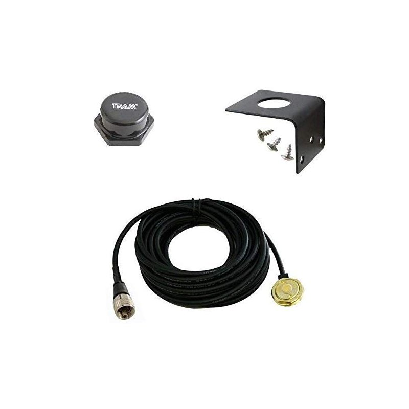 Tram 1250 NMO 3/4" Antenna Mount with 17 feet RG58 Coax Cable, Rain Cap and L Bracket.