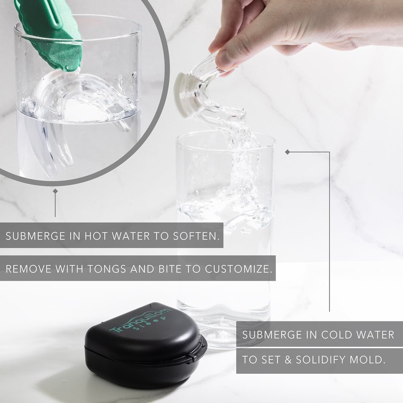 - Easy to use! Our mouthguard is incredibly easy to use! Simply place the product in warm water for a few minutes to allow the plastic time to become moldable. Then place the mouthpiece in your mouth and bite to mold the retainer to form to your teeth! Some mouth pieces have many steps to create the custom fit - We have a 1 step process that will give you relief while you sleep. We promise you will find our product very easy to use!