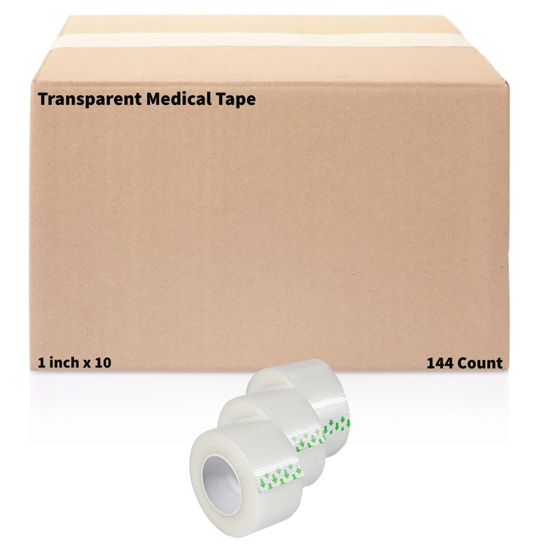 Transparent Medical Tape [144 Rolls] Clear Surgical First Aid Bandage Tape for Wound Dressing Care - 1 inch x 10 Yds Breathable Latex Free (144)