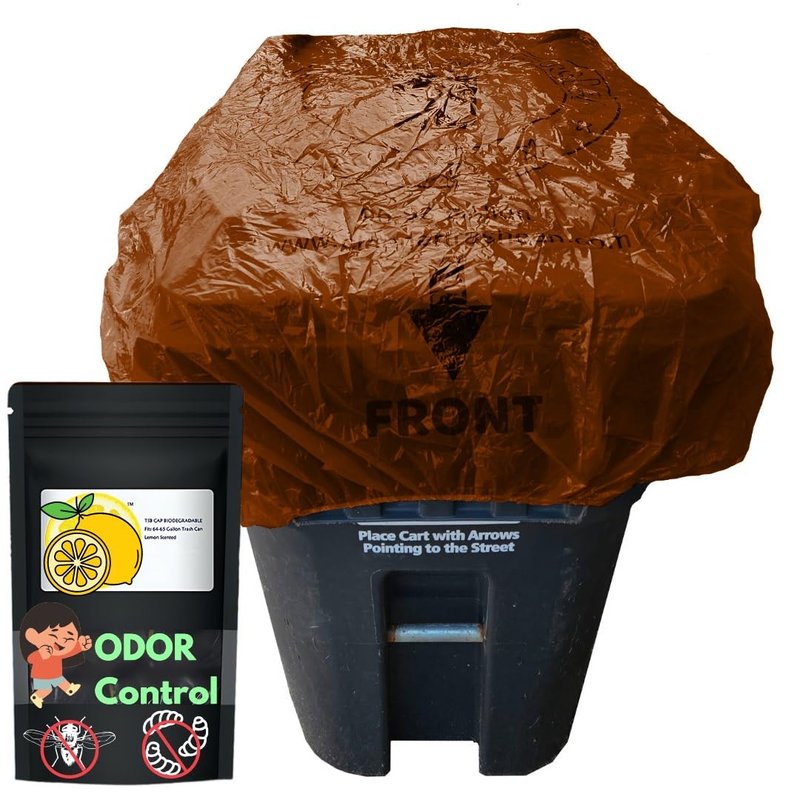 trash smell buster, Trash Can Cover, Biodegradable Odor Eliminating Bag with Elastic Rubber Band, Eliminates Odor from Trash, Lemon Scented, Durable, Effective, 45 Gallon, 3 per Bag