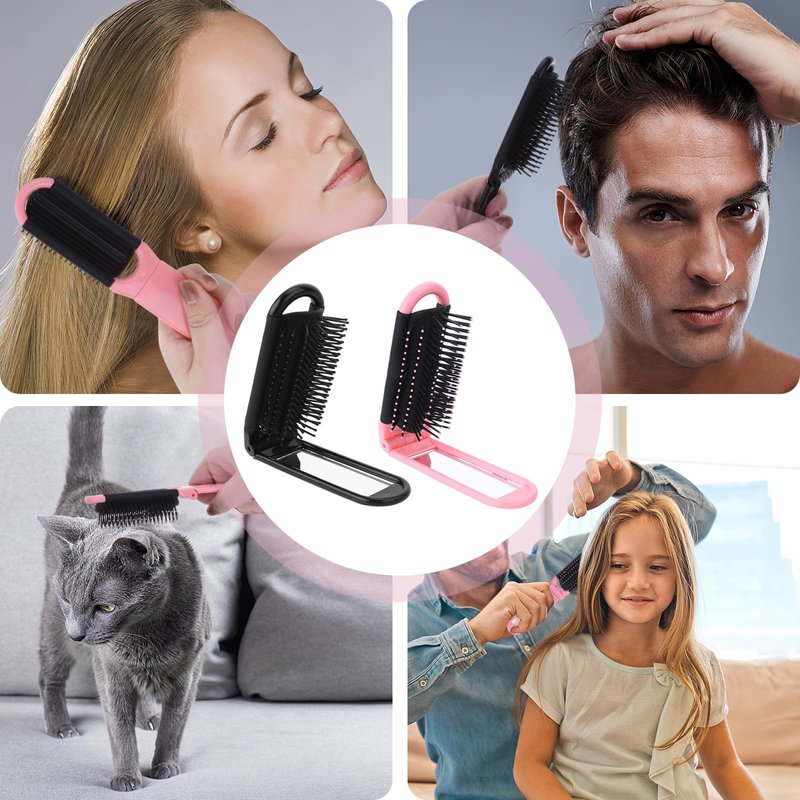 Travel Compact Hair Brush with Mirror and Massage Comb - 2 PCS Folding Comb, Mini Brush for Purse, Wet Hair Brush for Women and Men