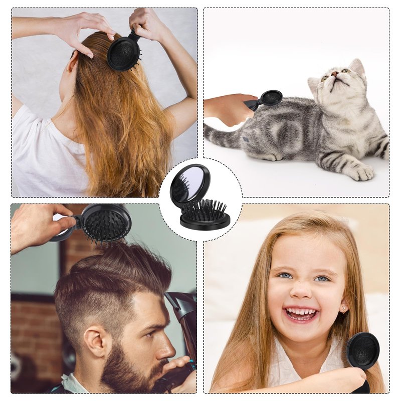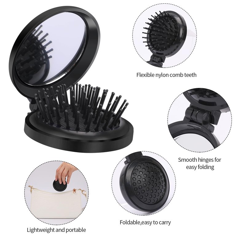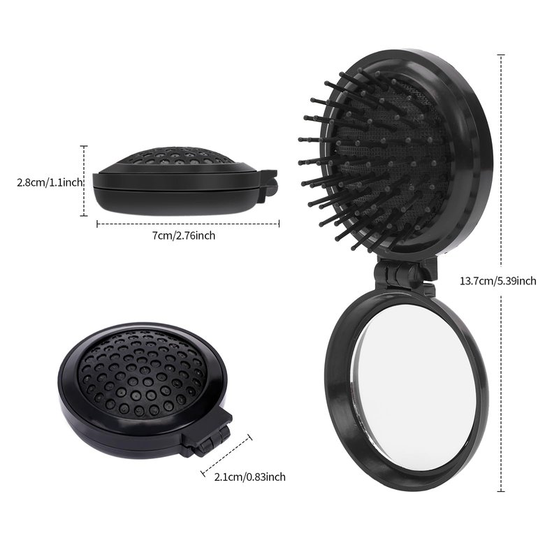 - QUALITY MATERIALS - The portable hair brush is made of quality plastic (ABS) and the comb is made of nylon. Lightweight, strong and durable, The inside of the handle is set with a compact mirror.it will serve you for a long time.