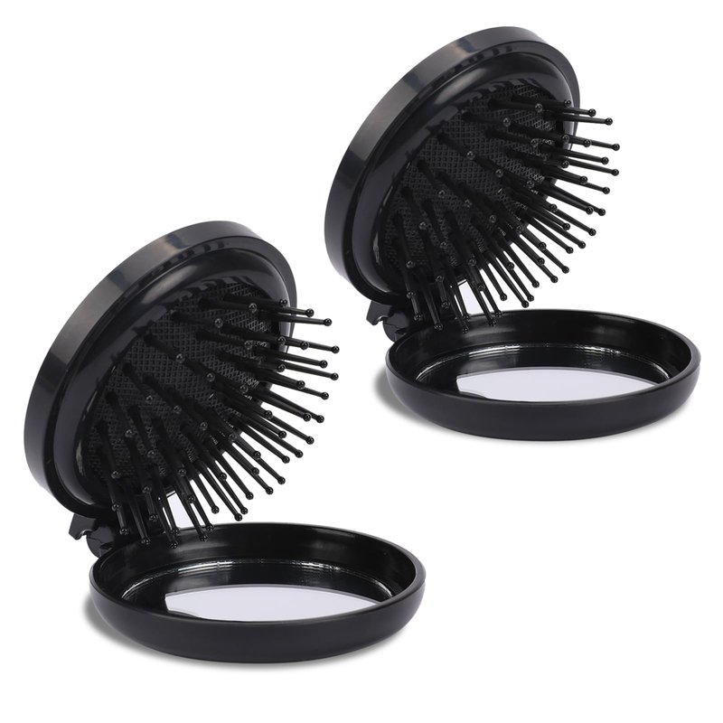 2pcs round folding hairbrush with mirror
