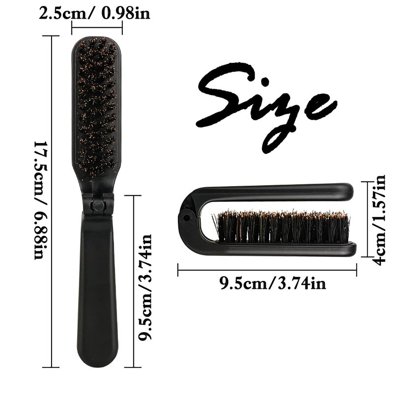 Travel Hair Brush Foldable Hairbrush Pocket-fit Mini Hairbrush Wild Boar Bristle Travel Hairbrush for Men, Women and Children Compact Finishing Hairbrush Dry and Wet Straight Curls (black)