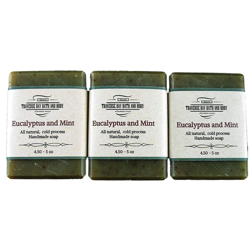 Traverse Bay Bath and Body- All natural handmade cold process bar soap, Eucalyptus and Peppermint, made in the USA, essential oils. 3 bar pack 15 + oz. For men and women, face and body.