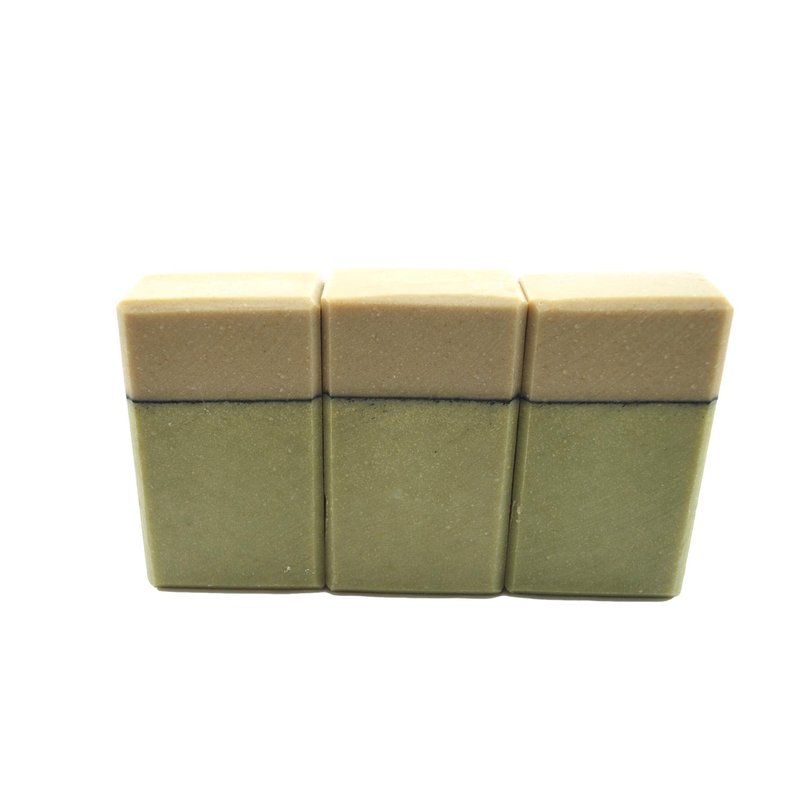 - Ingredients: saponified oils of olive, rice bran, coconut oil, palm kernel, castor oil, unrefined shea butter, unrefined almond oil, unrefined avocado oil, essential oils, french green clay, nettle, Vitamin E, charcoal, botanicals,