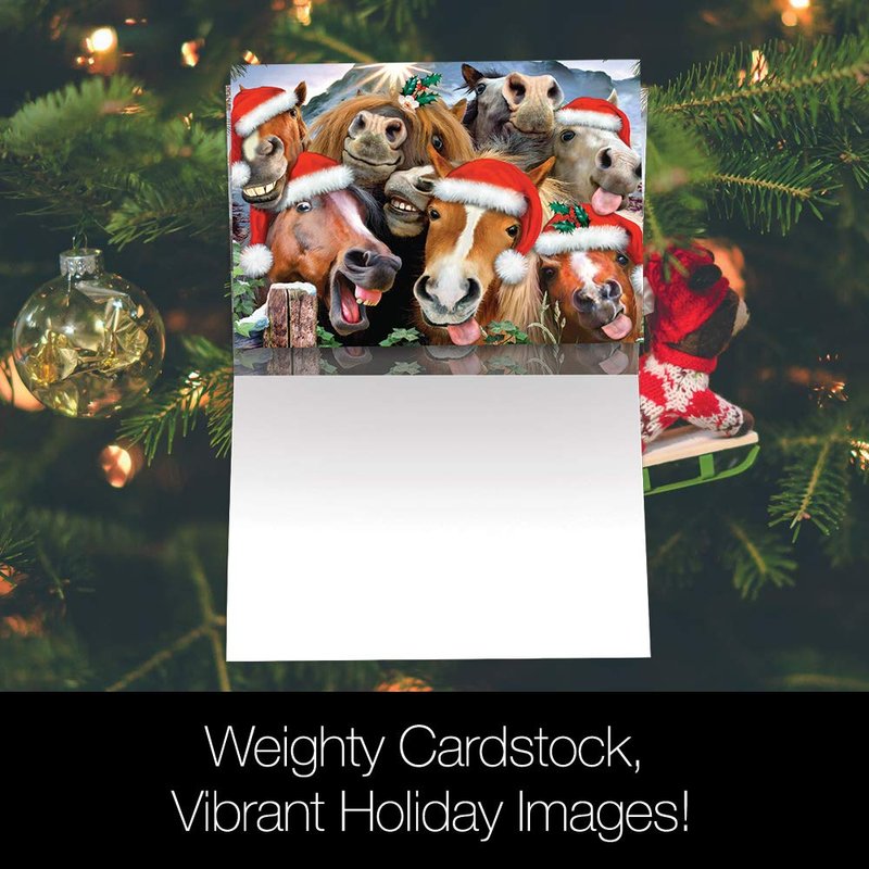 Tree-Free Greetings Christmas Cards and Envelopes, Holiday Card Set, 5 x 7 Inch Blank Cards, Box Set of 10, Horsing Around Holiday, (HB93243)