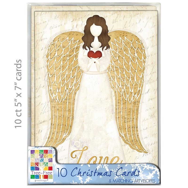 Tree-Free Greetings Christmas Cards and Envelopes, Holiday Card Set, 5 x 7 Inch Cards, Holiday Box Set of 10, Christmas Angel, (HB93390)