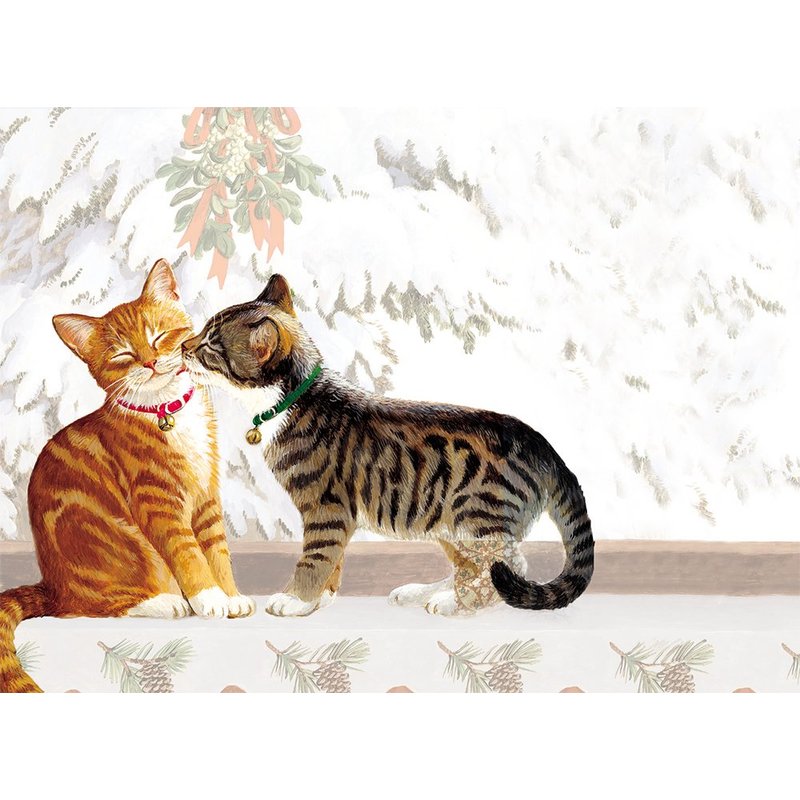 Tree-Free Greetings Happy Holidays Cards and Envelopes, Winter Card Set, 5 x 7 Inch Cards, Box Set of 10, Kitten Kiss, (HB93347)
