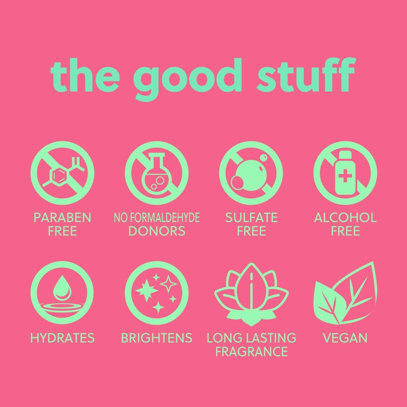 - Scent: a burst of hydration with key notes of Watermelon, Lemon Zest and Raspberry Cotton Candy