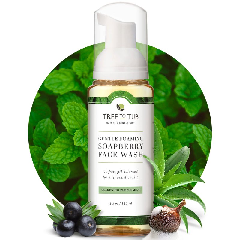 Tree to Tub Sensitive Skin Face Wash for Oily or Combination Skin - Gentle Tea Tree Face Cleanser for Women & Men, Oil Free Daily Foaming Facial Cleanser w/Organic Aloe Vera, All Natural Peppermint