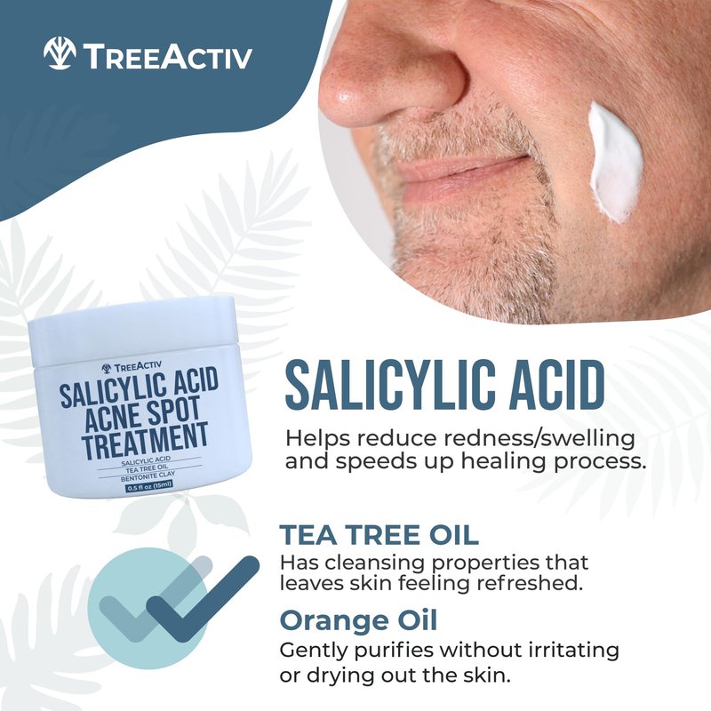 While there are many Acne control, acne topical, acne ointment, zit cream and acne spot treatments available to clear zit, finding the right acne treatment with salicylic acid can be a challenge. With TreeActiv's cream for pimples and spot treatment for face is a fast-acting teen and adult acne spot treatment that lessens acne and diminish future breakouts.