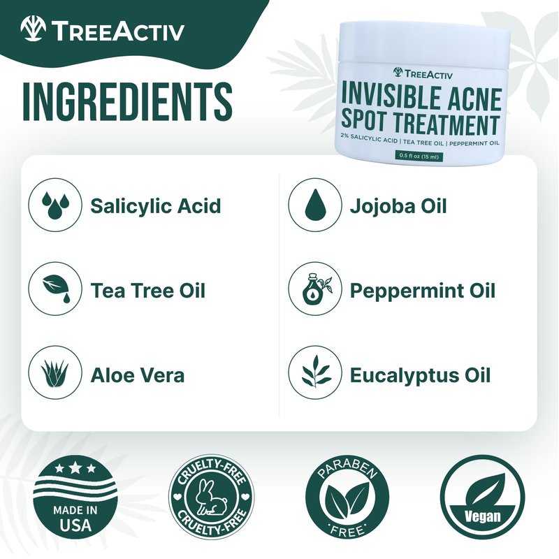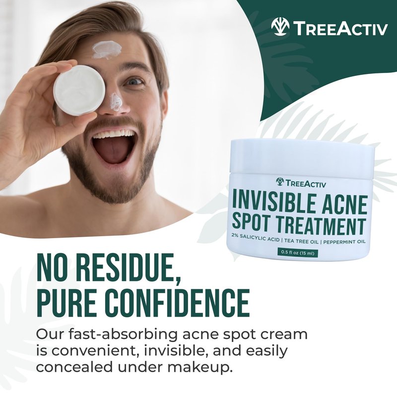 TreeActiv Invisible Salicylic Acid Cystic Acne Treatment For Face Original Formula, 0.5 fl oz, Acne Face Cream, Acne Spot Treatment for Face & Body, Acne Clearing Cream Moisturizer for Teens & Adults