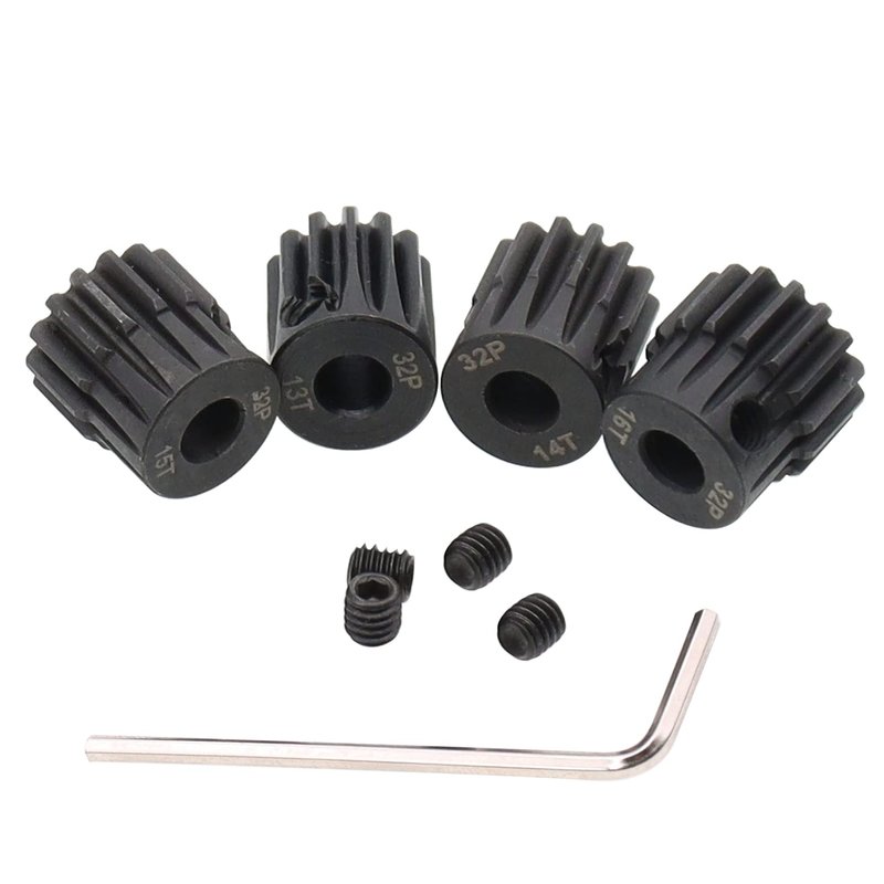 Treehobby 4PCS Metal Steel 32P 5mm Pinion Gear Set 13T 14T 15T 16T with Hex Key for RC Cars(Compatible with 0.8 Metric Pitch)