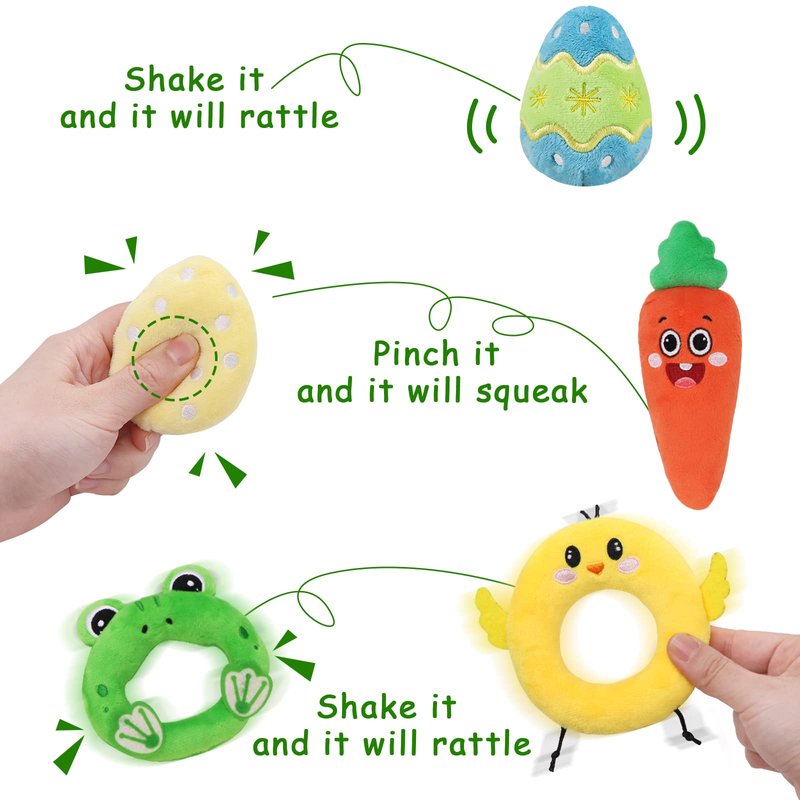 - PREMIUM QUALITY: Easter gifts for all ages. Safe and attractive. The Baby's first basket set is completely made of polyester. Includes no sharp objects or anything to swallow. Non-toxic and non-harmful for pregnant women and children. Sturdy and durable as Easter decorations. Good quality can guarantee long-term use.