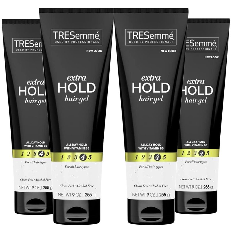 TRESemme Hair Gel with Vitamin B, Extra Hold Hair Gel, Protect Hair from Damaging Hair Dryer, Styling Tools & Appliances, Volumizing Hair Products with Frizz Control, 4 Tubes - 9 Oz. Ea.