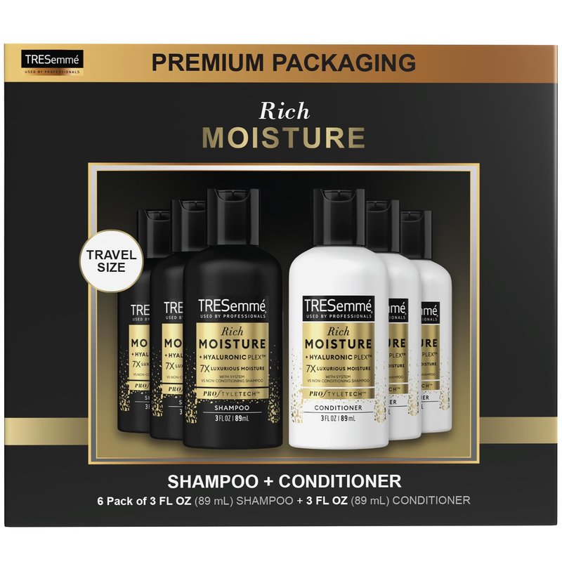 - TRAVEL SHAMPOO AND CONDITIONER SETS: Never let travel get in the way of salon-perfect hair with these color-safe, sulfate-free shampoo and conditioner sets by TRESemmé.