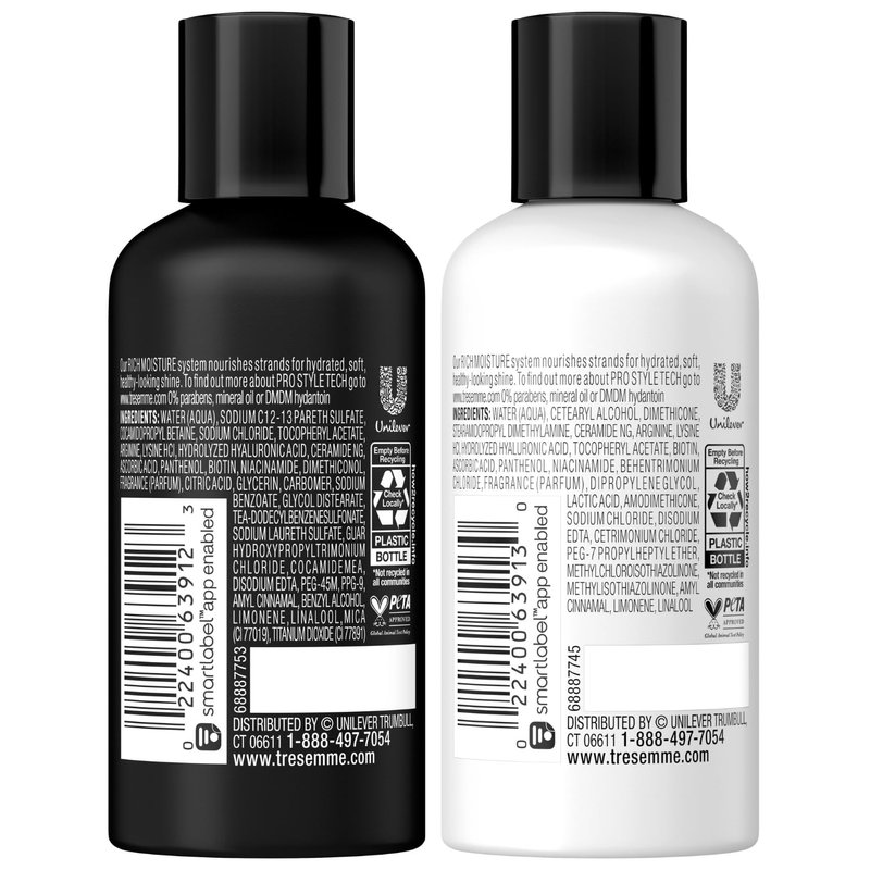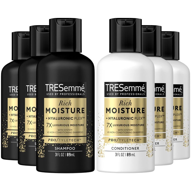 TRESemme Shampoo & Conditioner, Sulfate-Free, Travel Size - Moisture Rich Hair Treatment for Dry, Damaged Hair, Mini Shampoo & Conditioner Sets x 3 for Hair Repair, Scented, 3 Oz Ea (6 Piece Set)