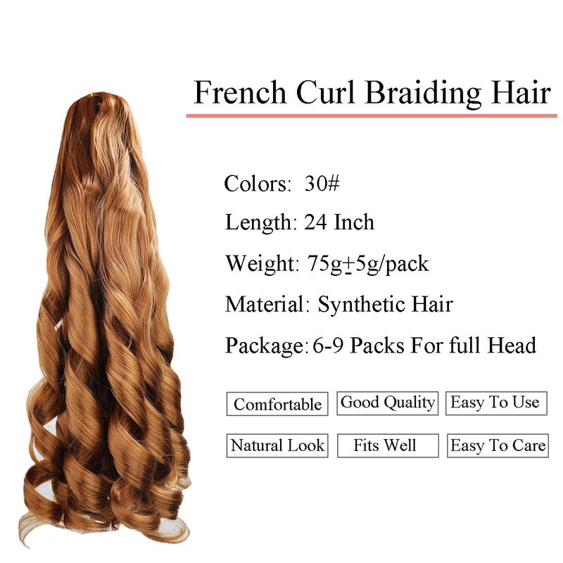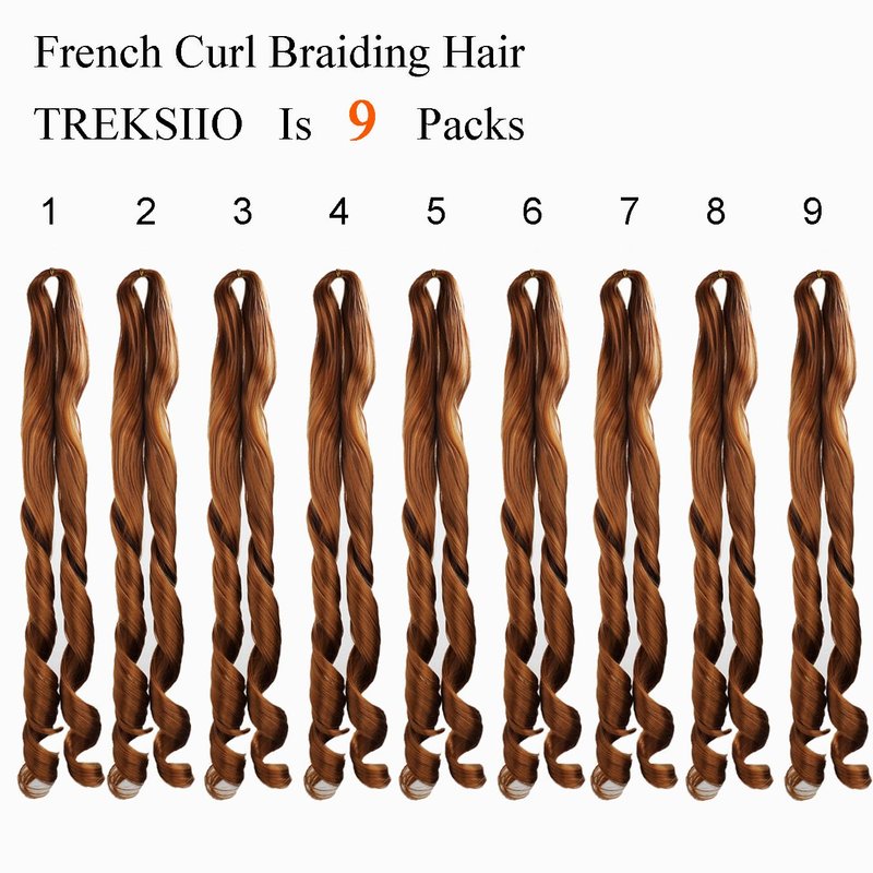 TRESKIIO 9 Packs 24 inch French Curl Braiding Hair Pre Stretched Wavy Synthetic Hair Extensions Premium french curly braiding hair expression pre stretched braids french curls crochet hair,30