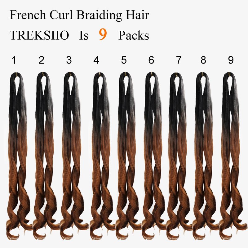 TRESKIIO 9 Packs 24 inch French Curl Braiding Hair Pre Stretched Wavy Synthetic Hair Extensions Premium french curly braiding hair expression pre stretched braids french curls crochet hair,B29