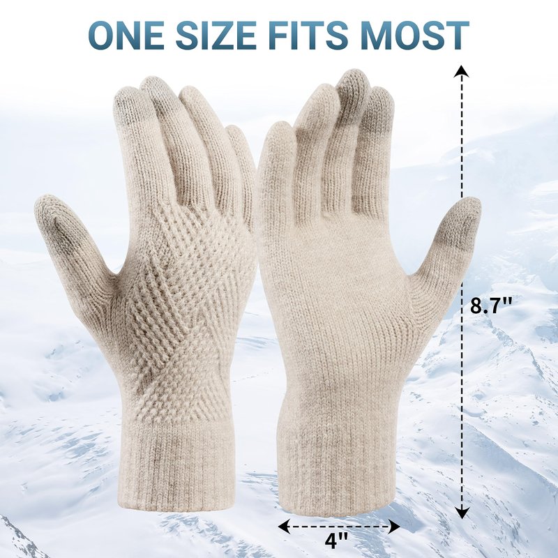 - 🧤One Size Fits Most - The fleece lined touchscreen gloves measure approximately 8.7 inches in length and 4 inches in width, suitable for most women and girls due to its nice elasticity and great stretchy, bringing you a snug fit and not slipping from your hands easily.