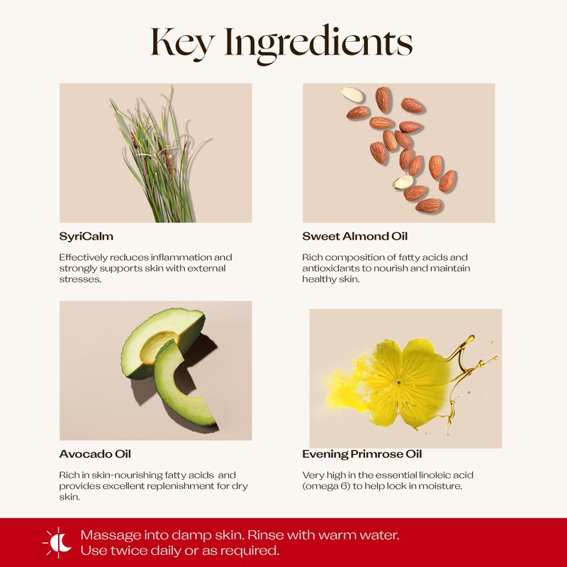 - Nourishing Cleanse: Cleanses and hydrates, leaving skin soft and calm