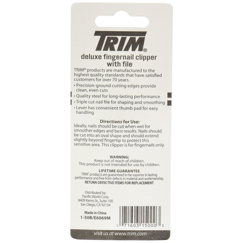 - NAIL CLIPPERS – Trim Deluxe Fingernail Clippers feature precision-ground cutting edges that provide clean even cuts, every time. Plus, with a convenient thumb pad for easy handling, you will confidently get your desired results.