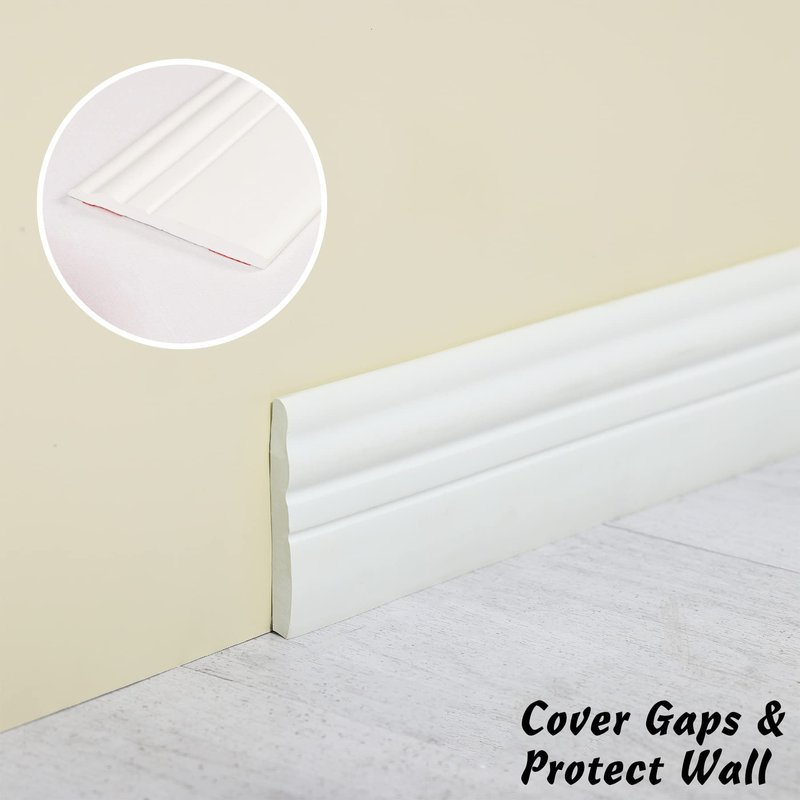 - 【Widely Used】With super strong stickiness, our wall baseboards can adhere to any surface (tile, plastic, metal, glass, wood, wall, etc.) Even on some arched or irregular edges. It can help you cover paint and gaps left by home renovations, effectively cover corner stress cracks and sloppy paint accidents, and avoid a dirty look. Great for protecting your walls, and always keep clean and tidy. It is both a trim strip and an edge protector for baby and pet, giving your house an elegant look