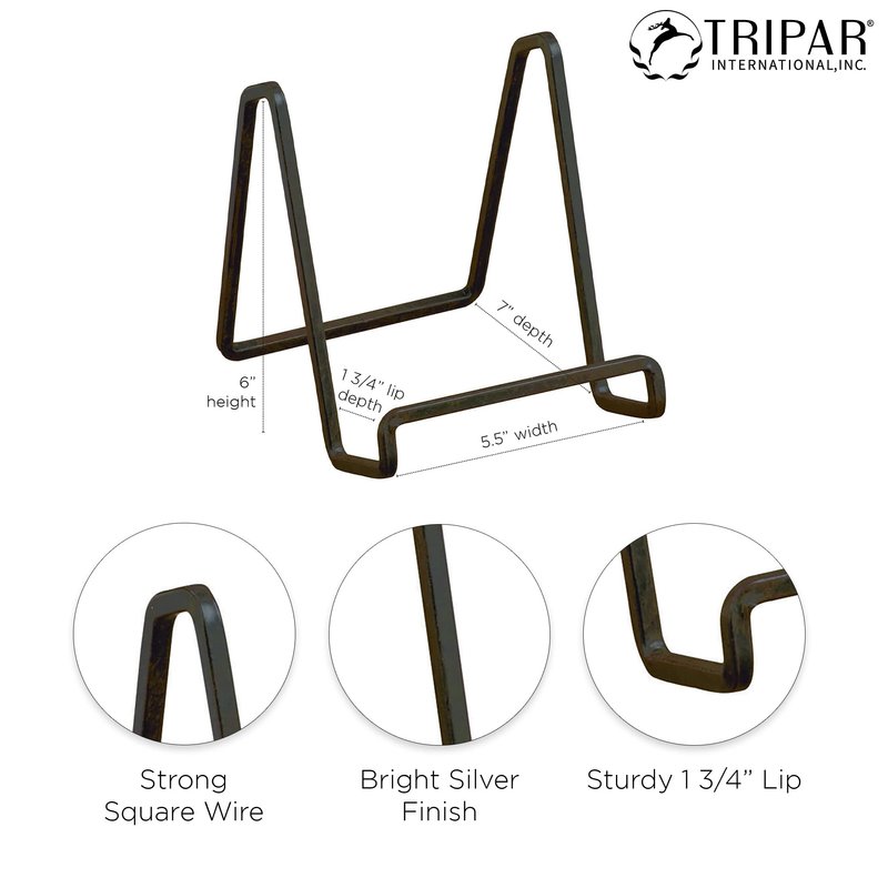 TRIPAR 6-Inch Metal Mahogany Painted Square Kitchen Book Holder/Stand, Wire Mini Easel, Small Photo Stands for Table, Display for Picture Frames, Plaques & Plates