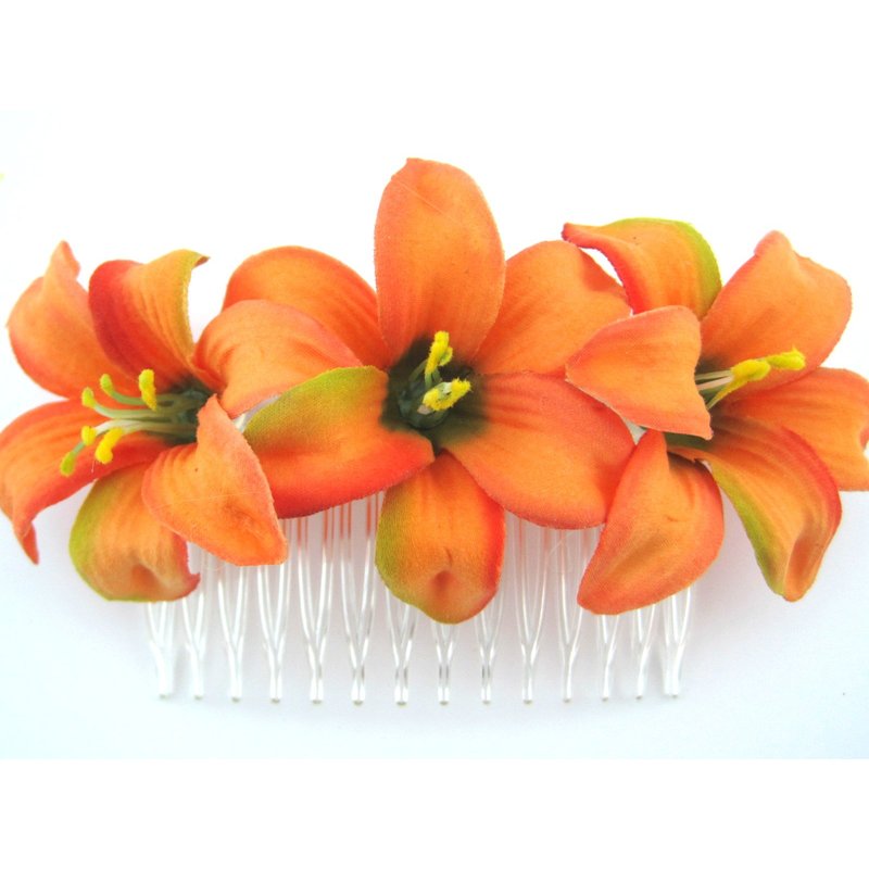 Triple 2" Tropical Orange Lily Silk Flower Hair Comb