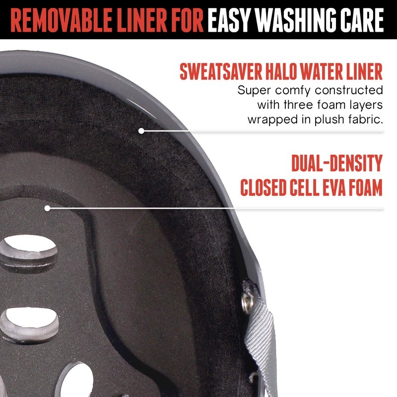 - Super comfy Sweat saver halo water liner constructed with three foam layers wrapped in plush fabric