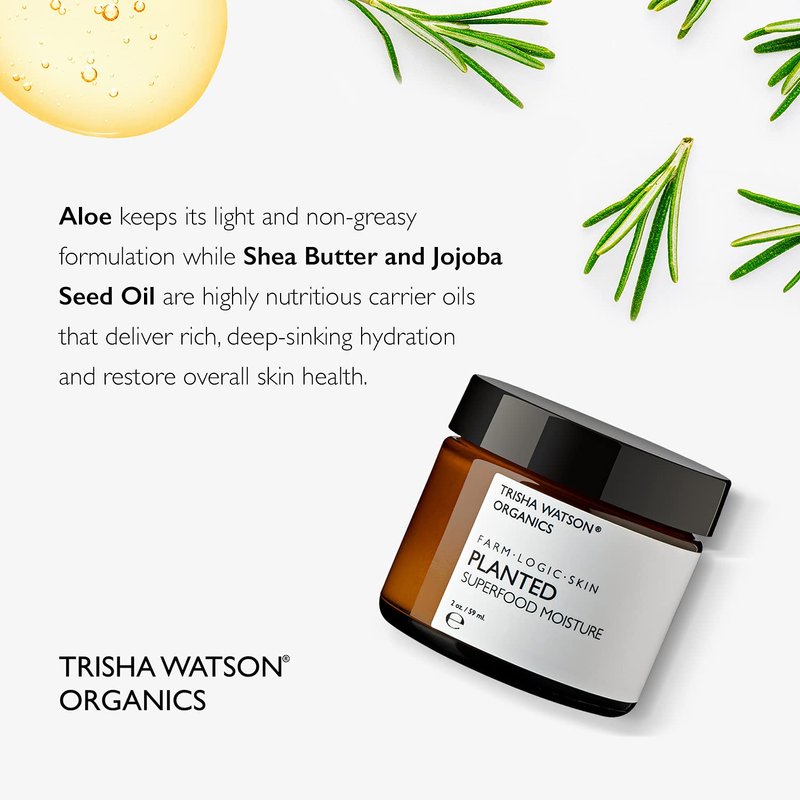 - ORGANIC POWER: Trisha Watson Organics Planted Superfood Moisture is made with powerful plant properties which work wonders on your skin that will leave you a visible difference. Aloe keeps its light and non-greasy formulation while Shea Butter and Jojoba Seed Oil are highly nutritious carrier oils that deliver rich, deep-sinking hydration and restore overall skin health.