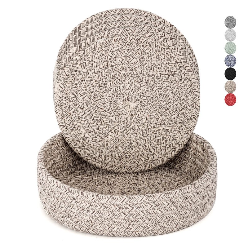 - QUANTITY AND SIZE: 4 pieces 7 inch trivet mats, 1 piece 8 inch storage basket. Product thickness 0.32 inch.