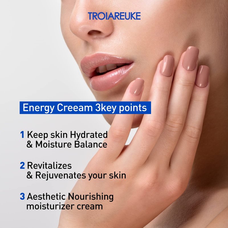 TROIAREUKE Energy Cream, Deep Nourishing Moisturizer for Face, Moisturizing Facial Night Cream with Bifida, Galactomyces, and Peptides For Dry, Dehydrated, and Combination Skin, Korean Skin Care