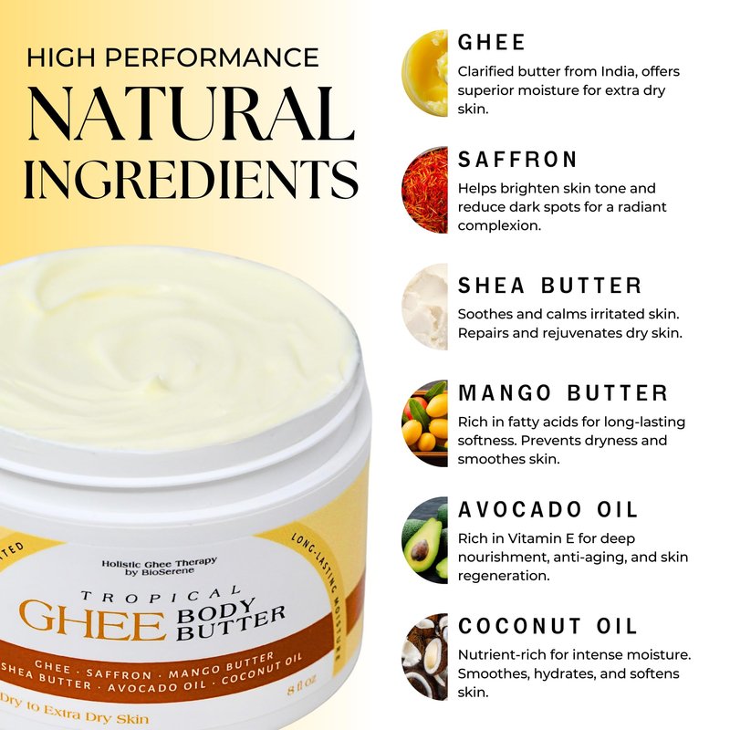 - ✅ Intensive Moisturization: Our Holistic Ghee Body Butter is the best cream for extremely dry skin. This emollient cream providing deep and long lasting moisture for dry and chapped skin.