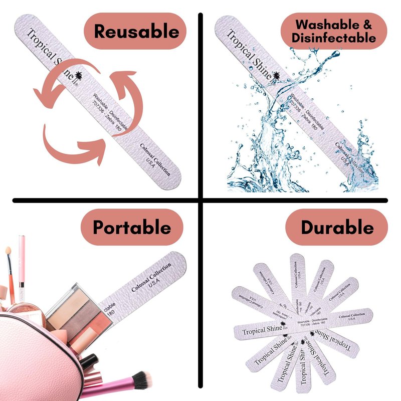 Tropical Shine Jumbo Zebra 180 Colossal Collection - 6 pcs Nail Files for Professional Nail Care and Shaping - Medium (180) Grit Nail File Set for Natural Nails (707336)
